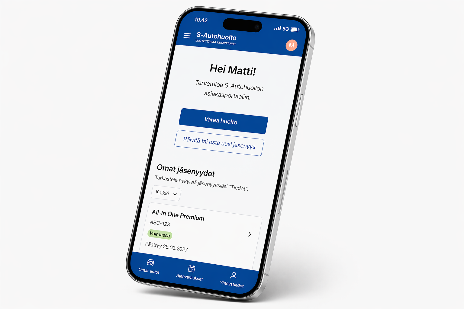 S-Autohuollon etuasiakkuus tekee auton ylläpidosta selkeämpää, ennakoitavampaa ja helpommin hallittavaa. Kun huollot, katsastukseen liittyvät kulut ja auton tiedot ovat yhdessä paikassa, arjen autoilu sujuu ilman turhia yllätyksiä.